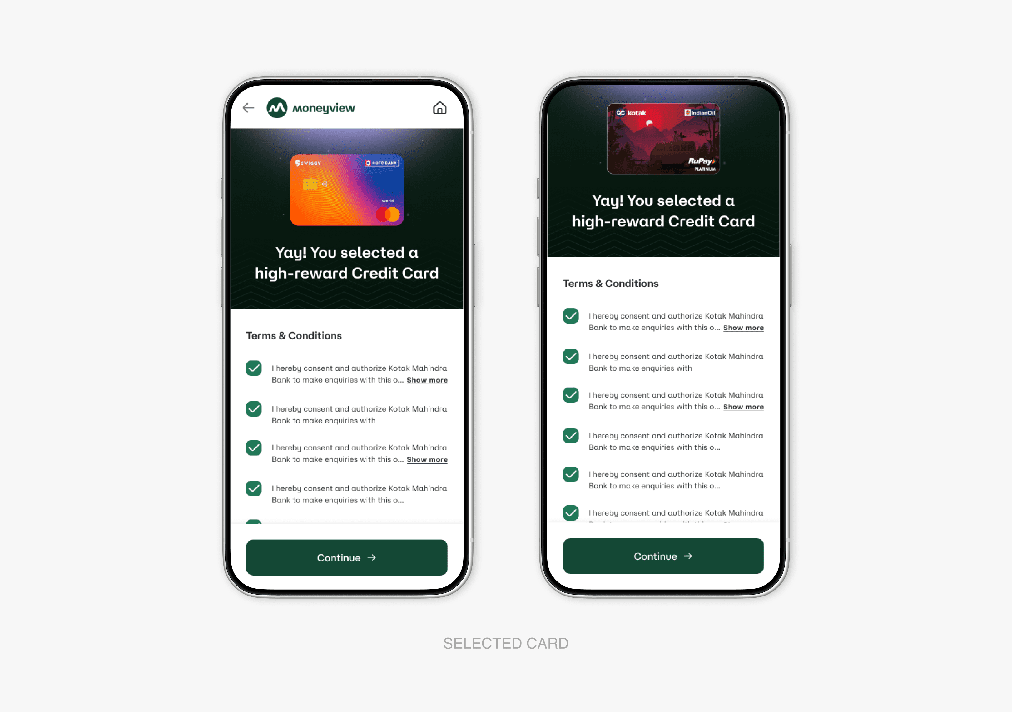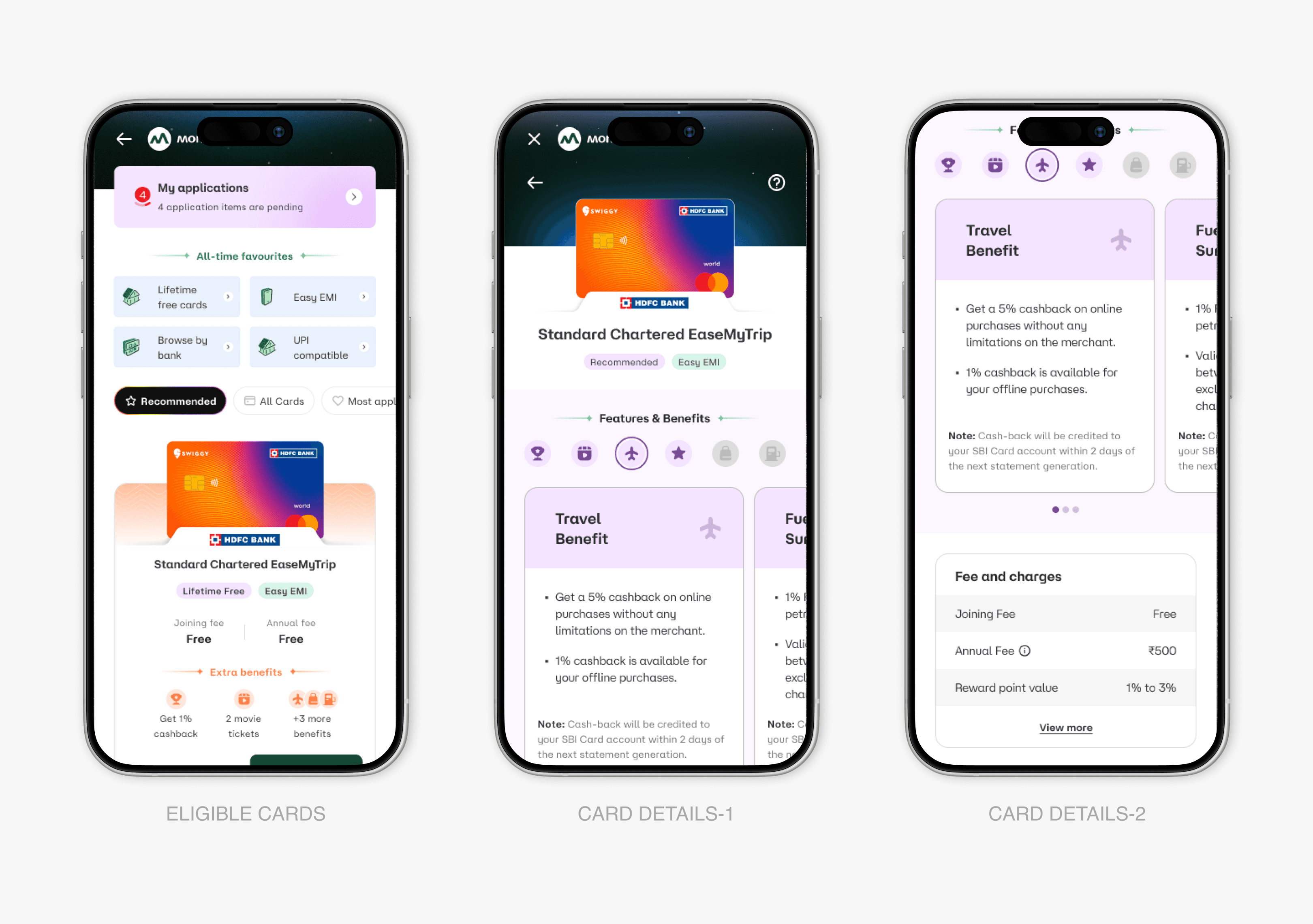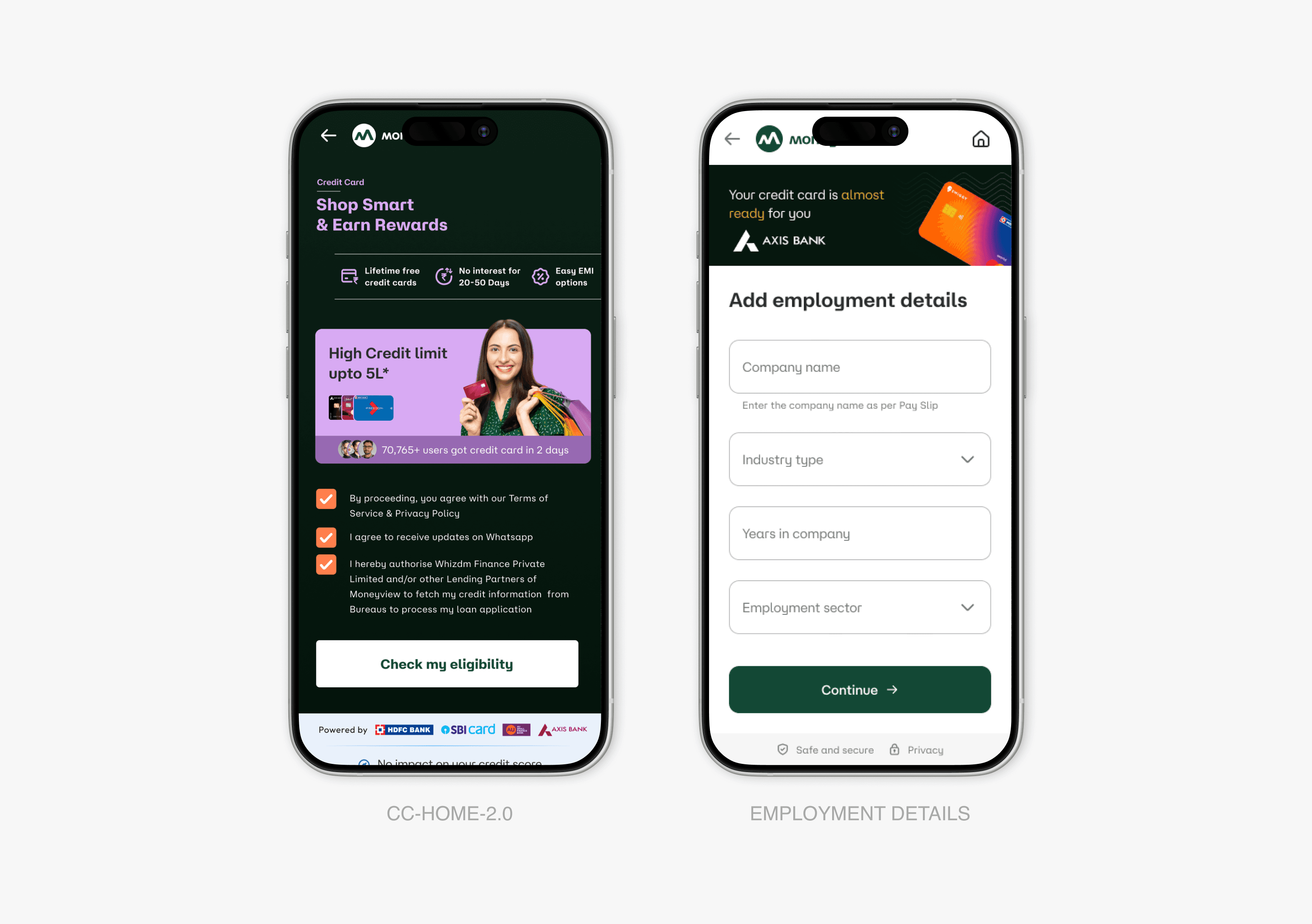 I led the redesign of Moneyview's credit card experience, transforming a 95% abandonment rate into an empowering financial discovery journey.