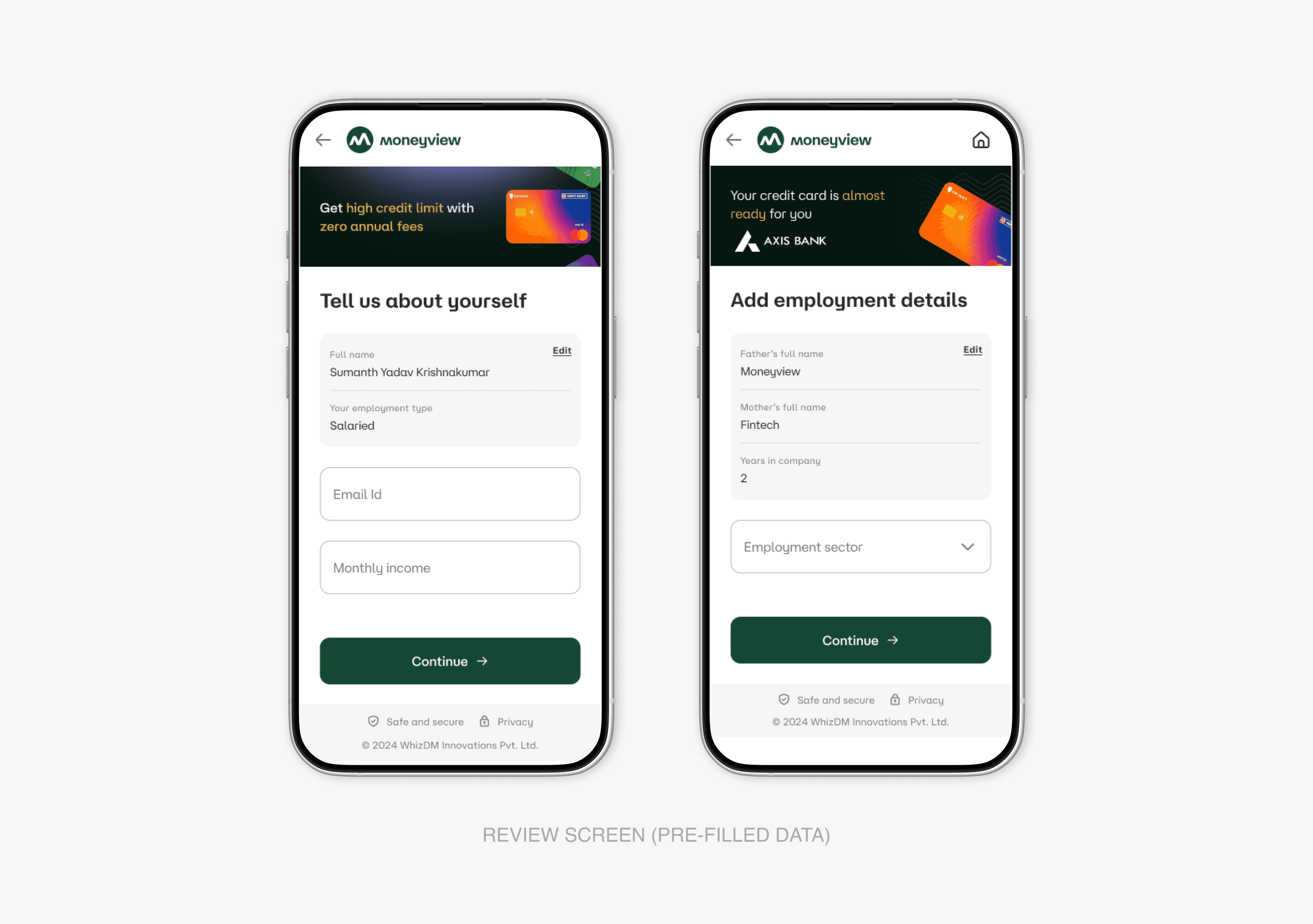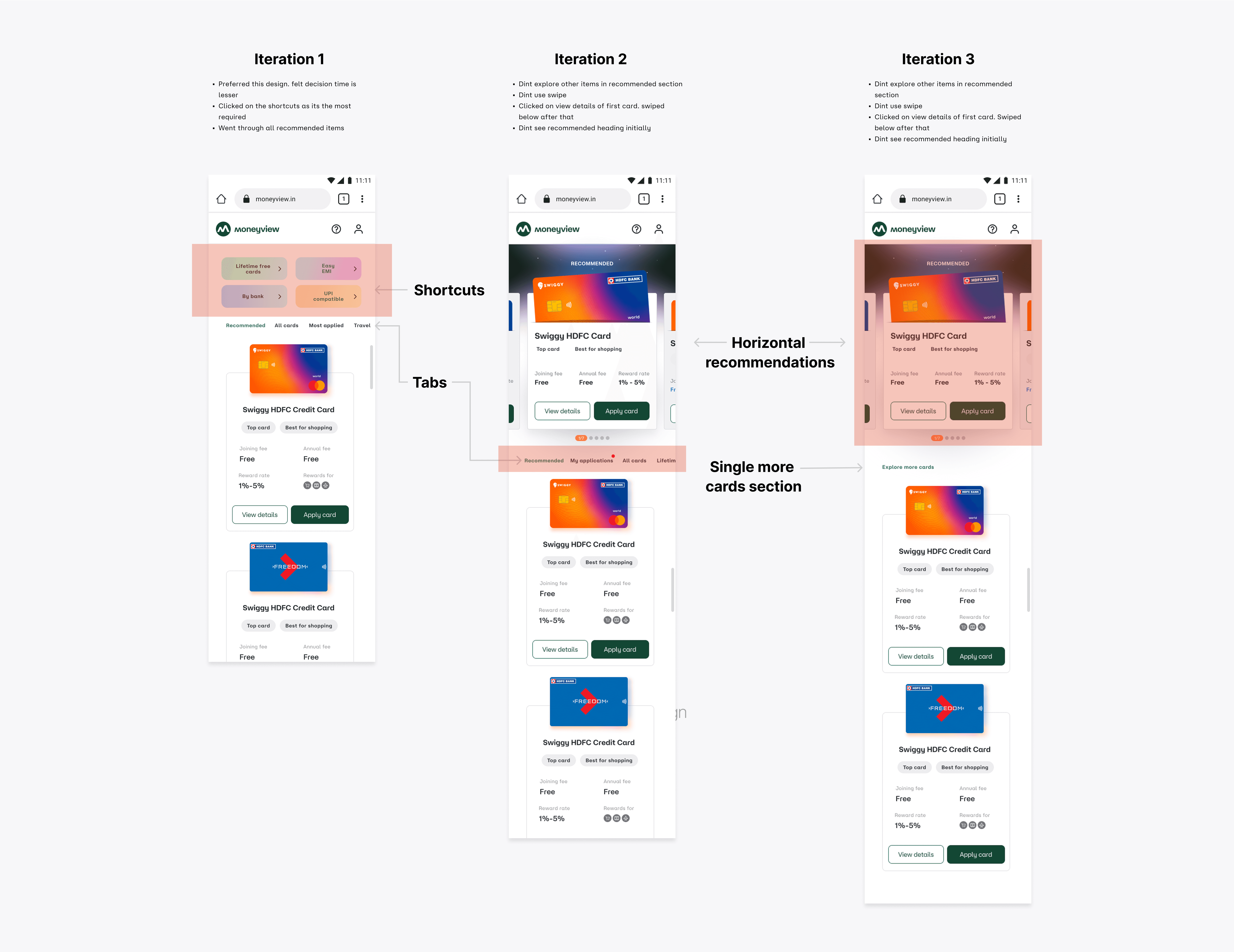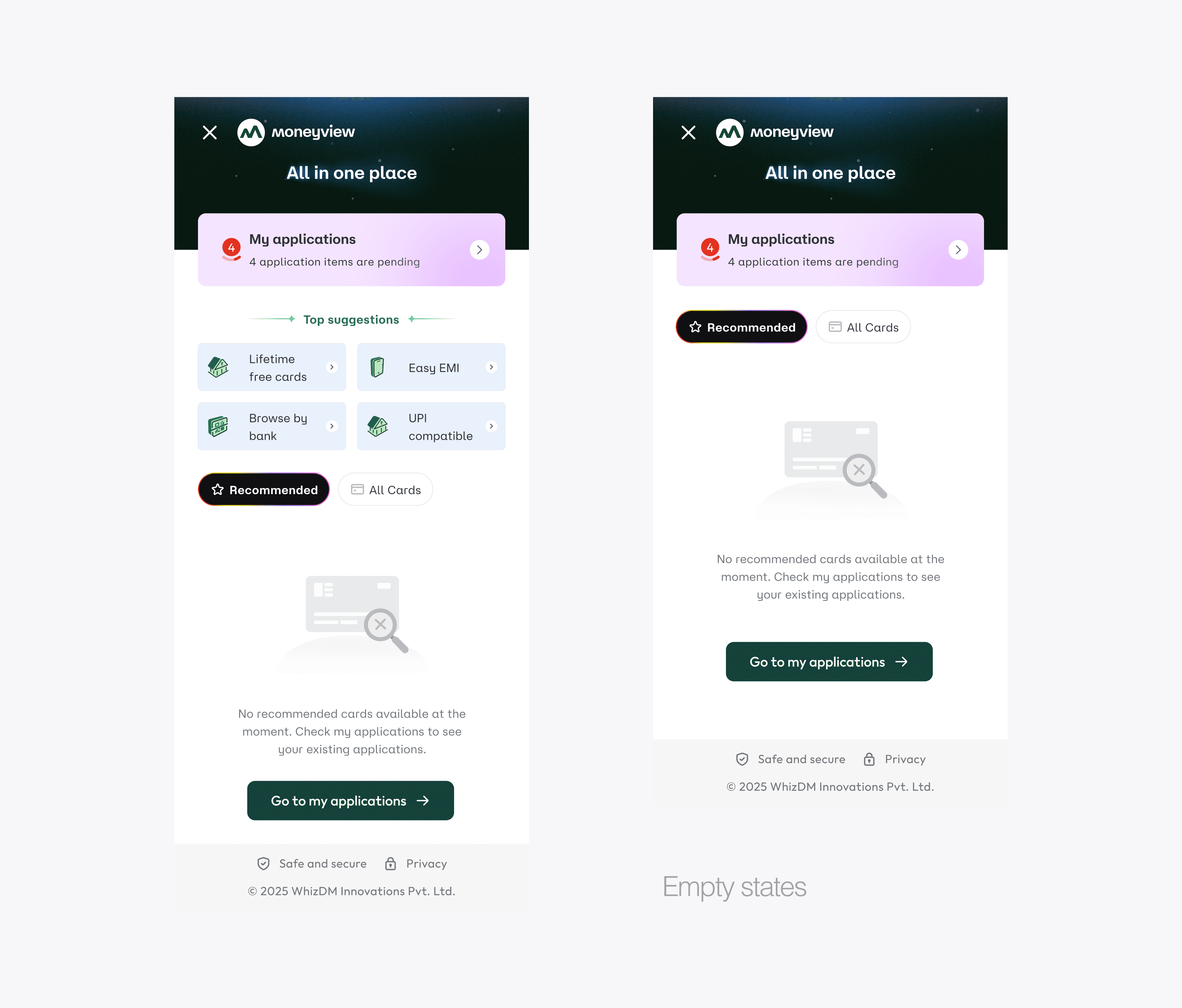 I led the redesign of Moneyview's credit card experience, transforming a 95% abandonment rate into an empowering financial discovery journey.