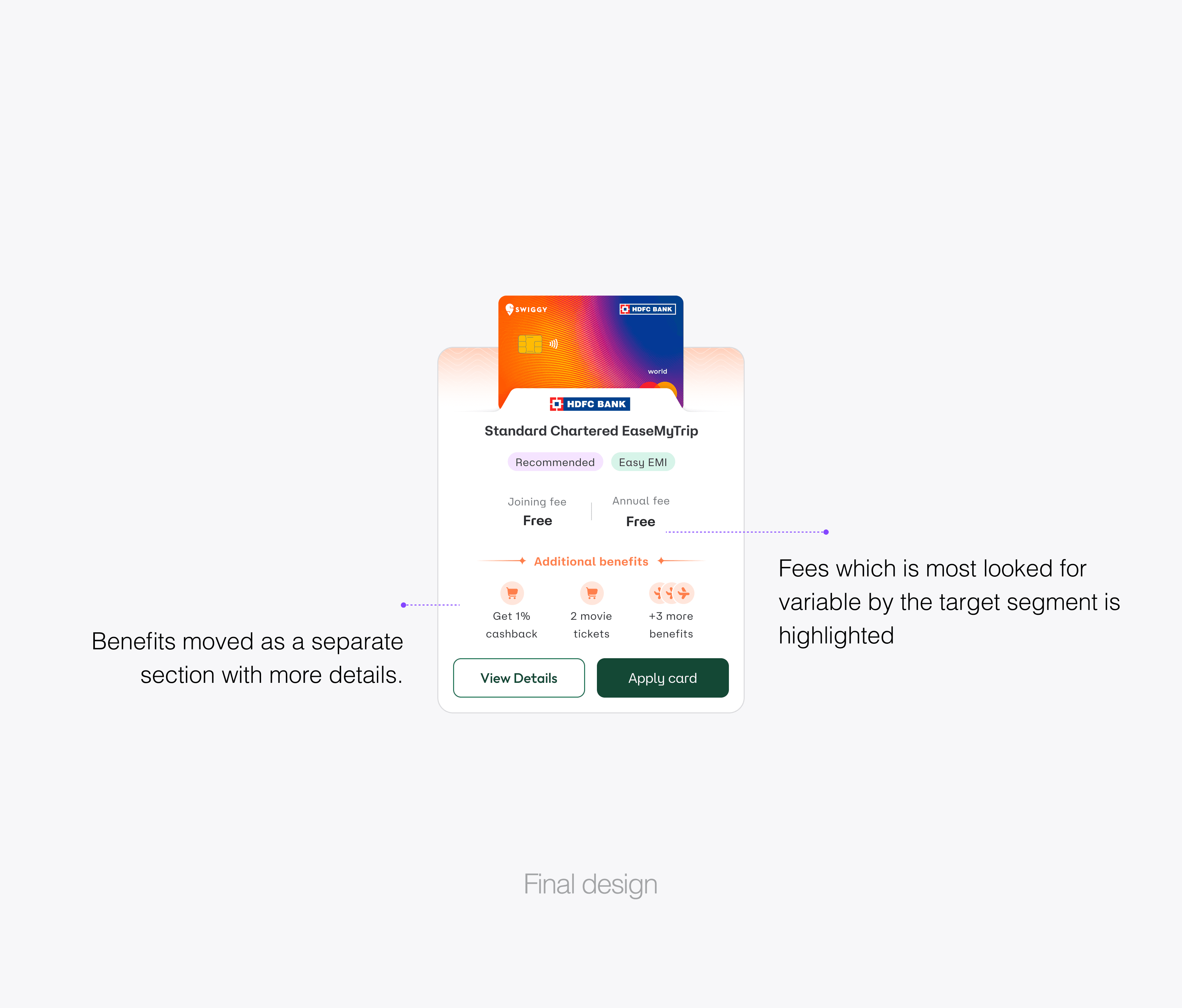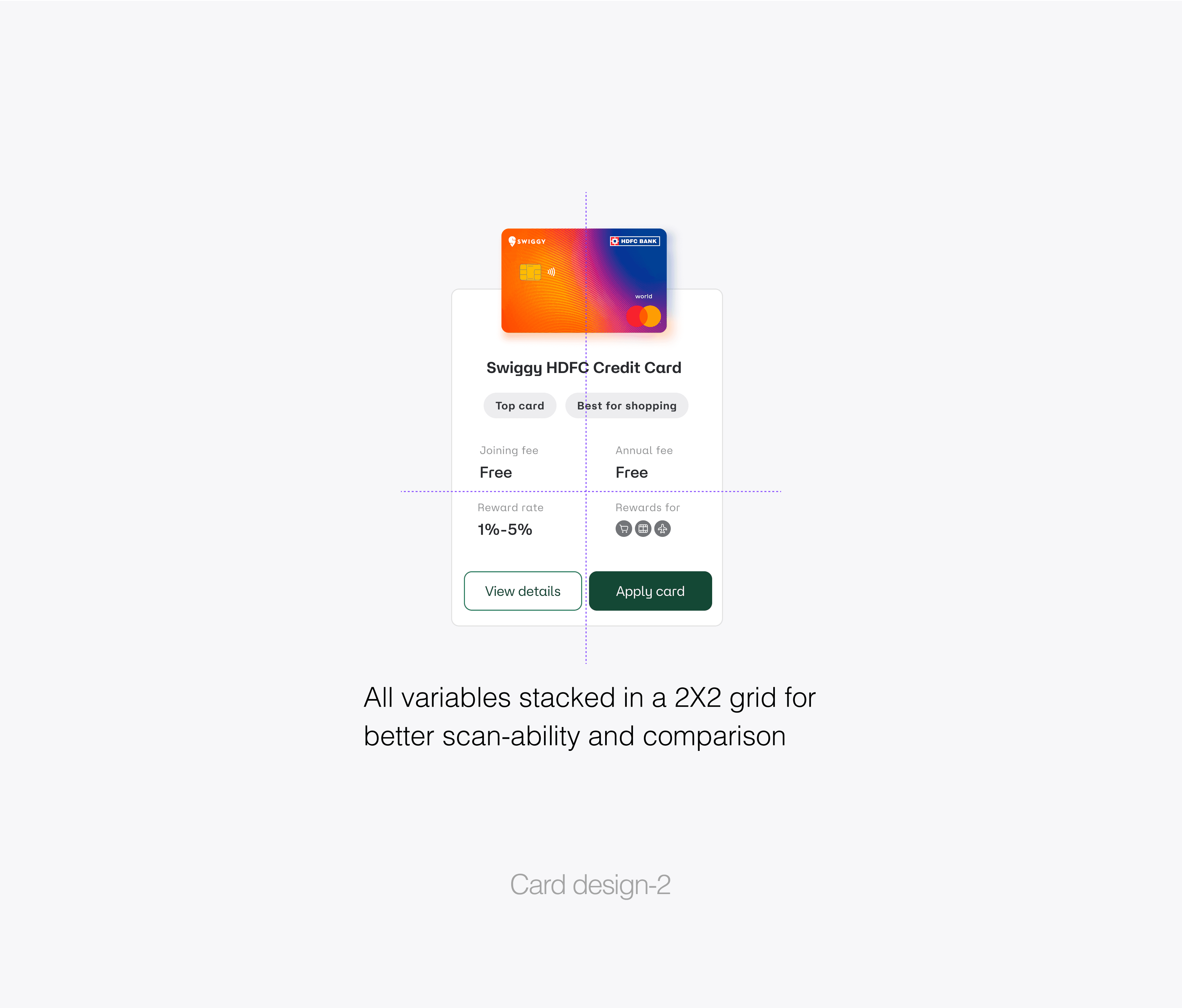 Action Clarity: Distinct "View Details" and "Apply Card" pathways